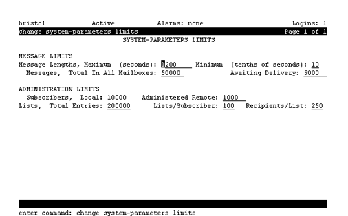 Enter the length, in seconds, of the longest message that can be created. Maximum message lengths for individual subscribers can be further restricted on the Class of Service and Subscriber screens. |