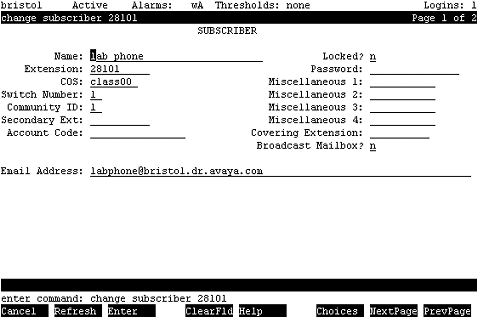 > AUDIX Subscriber Screen
