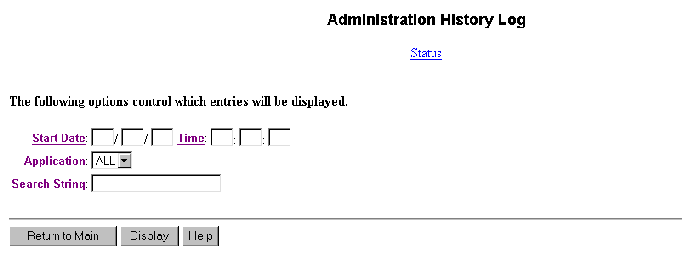 The beginning date for the log report. If you leave this field blank, all ADMIN events are displayed. The default value is the date that this page was last used. (This pagelastused date is preserved across restarts.) |