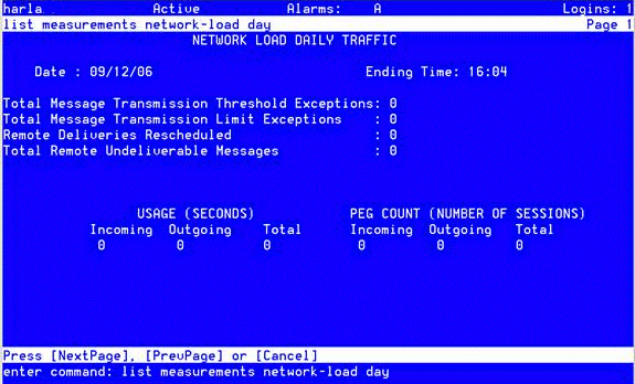 Table: Field Definitions: Network Load Daily Traffic Screen, Page 1