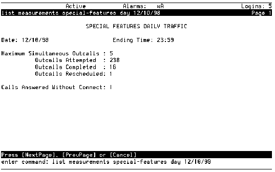 Table: Field Definitions: Special Features Daily Traffic Screen