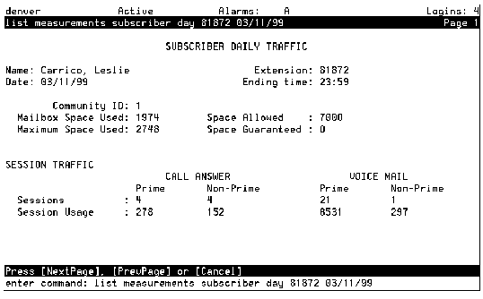 VOICE MAIL Sessions, Prime Sessions, Non-Prime |