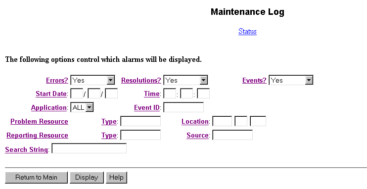 Table: Field Definitions: Maintenance Log Selection