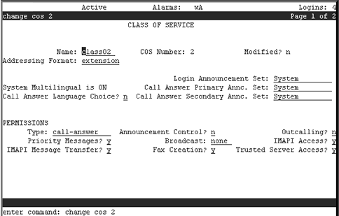 Enables fax for this COS. Enter n if you do not want subscribers to have this capability or if fax messaging has not been purchased for your system.