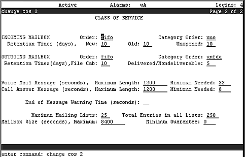Table: Field Definitions: Class of Service Screen, Page 2