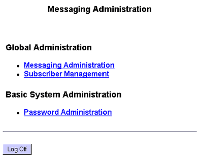 Messaging Administration main menu (vm login version)