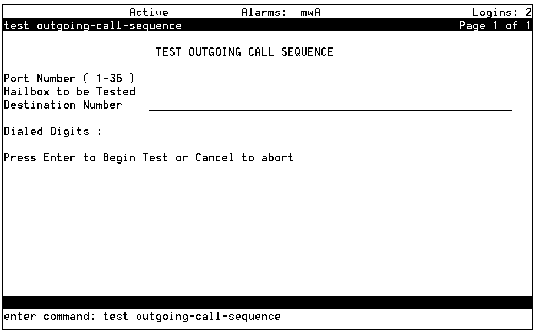 A Destination Number must be specified for this test to run. In addition, to make the test compatible with AMIS analog networking and outcalling administration, the following can be included in the digit string: