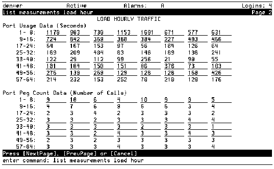 The number of calls that each port handled during the reporting period. This report displays 64 pegcount values, corresponding to ports 1 to 64. |