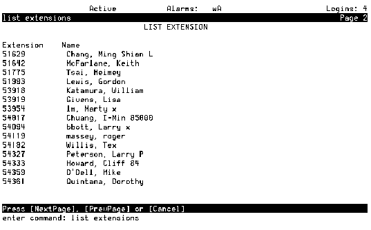 List Extensions Screen; Viewing AUDIX Subscriber Telephone Extensions