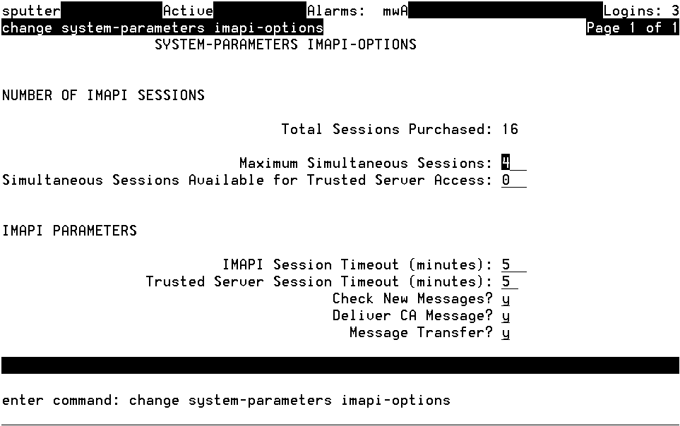 System-Parameters IMAPI-Options Screen