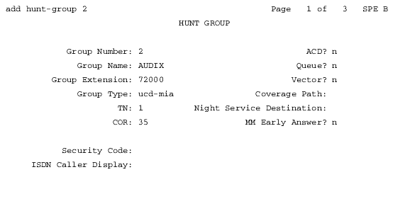 Hunt Group Screen, Page 1 (Remote - Node #3)