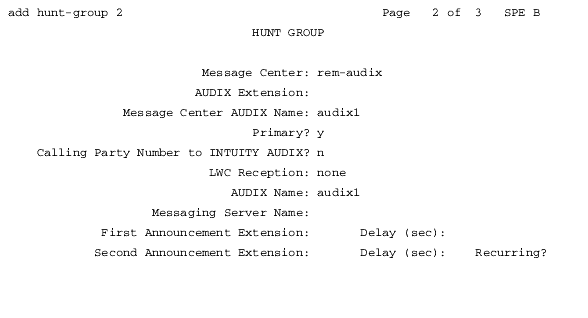 Hunt Group Screen, Page 2 (Remote - Node #5)