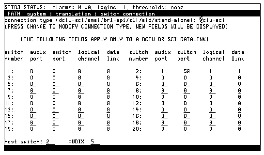 AUDIX R1 System: Translation: Switch Connection Screen