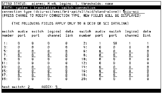 AUDIX R1 System: Translation: Switch Connection Screen