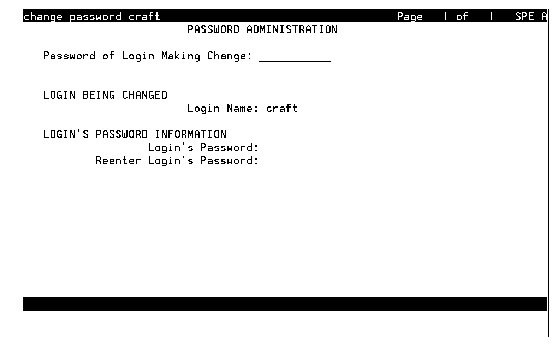 Passwords are changed using the PASSWORD ADMINISTRATION screen. See Typical Change Password Screen.