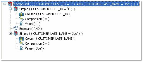 Working with Database Operations > Using the Database Operation File Editor > Predicate Tab > Setting Conditions for a Compound Database Operation | |