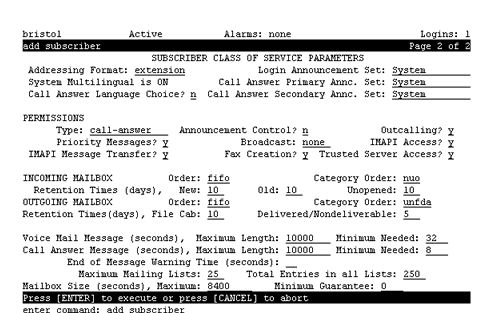 > Subscriber Screen, Page 2