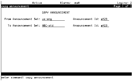 Table: Field Definitions: Copy Announcement Screen
