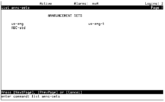 List Announcement Sets Screen