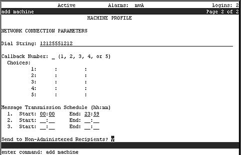 The message transmission schedule allows you to set time intervals