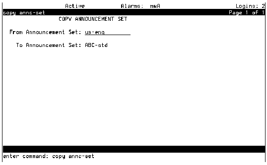 Table: Field Definitions: Copy Announcement Set Screen