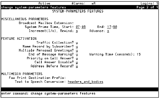 System-Parameters Features Screen, Page 2