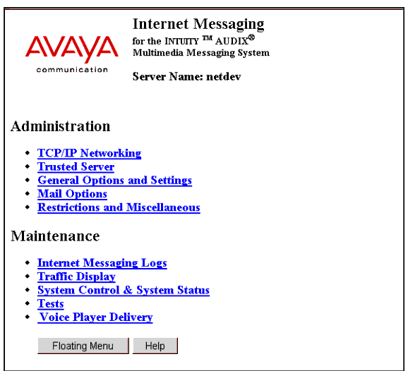 Internet Messaging Main Menu Screen