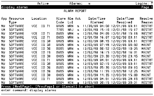 The specific alarm code you requested when generating the report, or all alarm codes if you did not specify a resource type. |