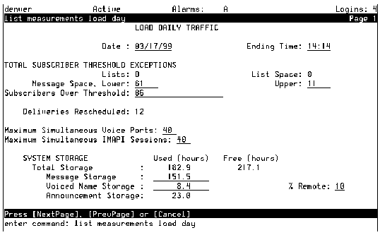 The starting date for which traffic data was collected for the report. It is the date you entered on the command line, or the current date if you did not specify a date. If you enter a date previous to the current date, each day's record is presented as an additional page (screen). Press F7 (NextPage) and F8 (PrevPage) to scroll through each daily report record. |
