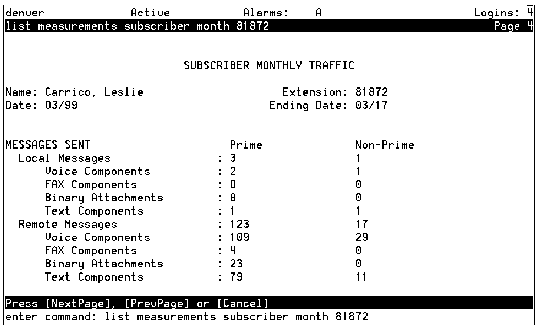 The name of the subscriber whose traffic information is being reported. It is the name you entered on the command line, or the name corresponding to the subscriber's extension, if you entered the extension.