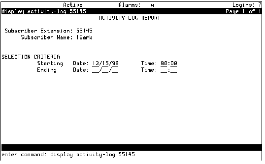 Activity-Log Report Screen; Specifying Log Information for the Report