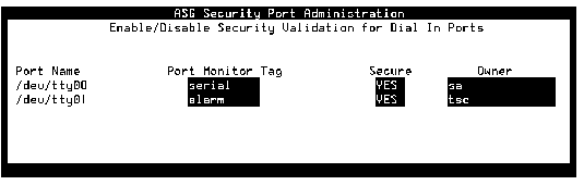 YES indicates that ASG performs user validation for those who attempt to log in to the port. NO indicates that port users can log in without undergoing ASG validation.