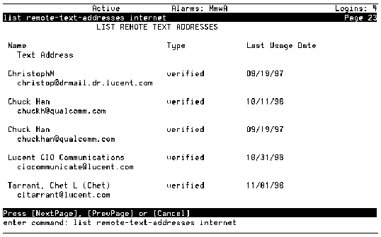 List Remote Text Addresses Screen