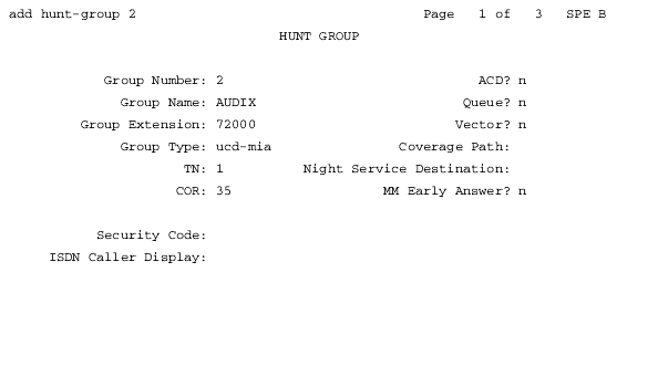 Hunt Group Screen, Page 1 (Remote - Node #4)