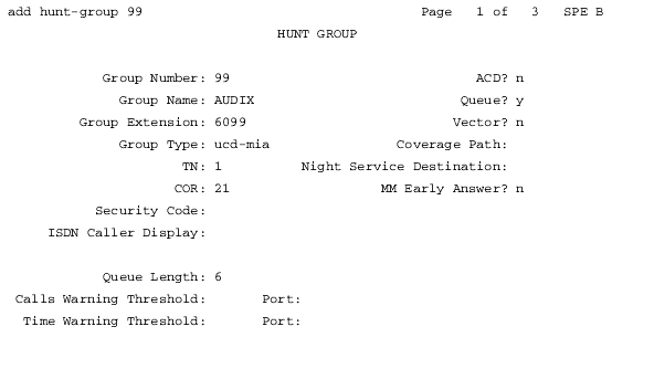 Hunt Group Screen, Page 1 (Host - Node #1)