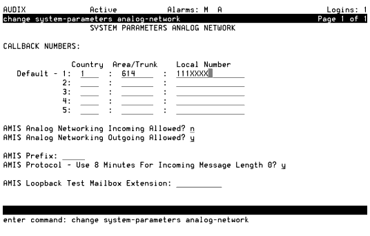 System Parameters Analog Network Screen