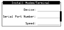 Install Modem/Terminal Screen