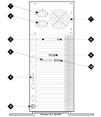 Connects the computer to the AC power source through a 3-prong, 5/10A, 110/230V power cord. |