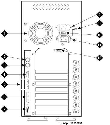 Connects the computer to the power source through a power cord |