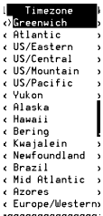 Time Zone Choices Menu