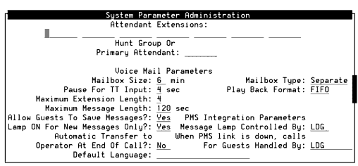 INTUITY AUDIX Lodging System Parameter Administration Window