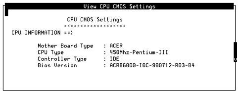 View CPU CMOS Settings Window (MAP/5PV3 Only)