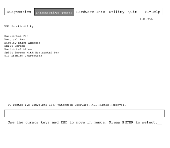 Video Adapter VGA Functions Tests Screen
