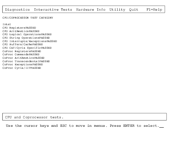 CPU and Coprocessor Diagnostics Results Screen