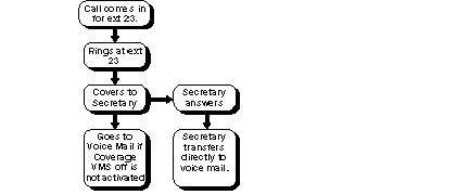 If you need coverage by a personal secretary who is not a system operator at an operator console, then Primary Coverage can be used on the secretary's telephone. The secretary can use Direct Voice Mail to transfer the call back to the user's voice mail. If the secretary is out, calls can either continue to ring or go to voice mail, depending on the status of the user's Coverage VMS Off button.