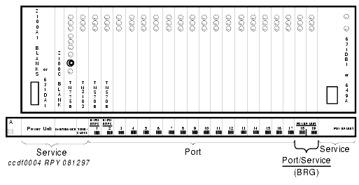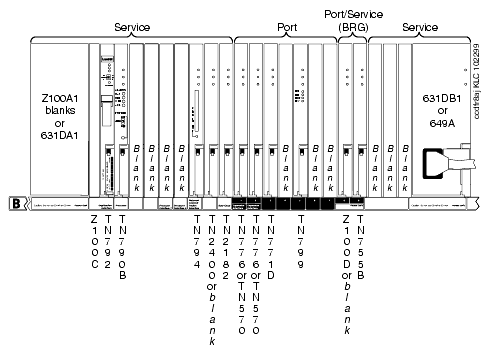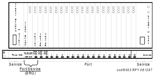 The power units and circuit packs shown in the carriers are representative examples only. The actual installed hardware may vary from that shown in the illustrations.