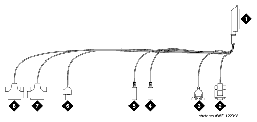 The TN802B external cable assembly is a bundle of cables with an amphenol connector at the end of the bundle and various PC-type connectors (VGA, Universal Serial Bus [USB], mouse, keyboard, Ethernet, modem, and COM2) at the ends of the individual cables. See TN802B IP Interface External Cable Assembly. Look for the label where the bundle enters the amphenol connector.