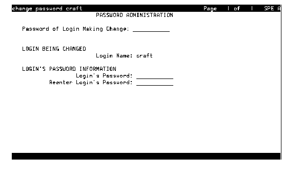 Passwords are changed using the PASSWORD ADMINISTRATION screen. See Typical Change Password Screen.