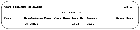 - The example shows PASS in the Result field, indicating a successful test of the firmware download circuitry.
