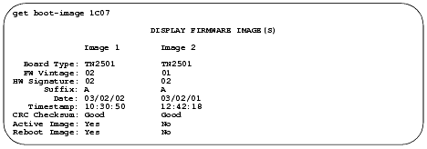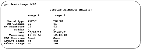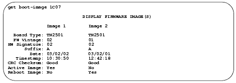 - At the SAT type get boot-image <UUCSS> and press return to check the status of the firmware images on the target circuit pack.